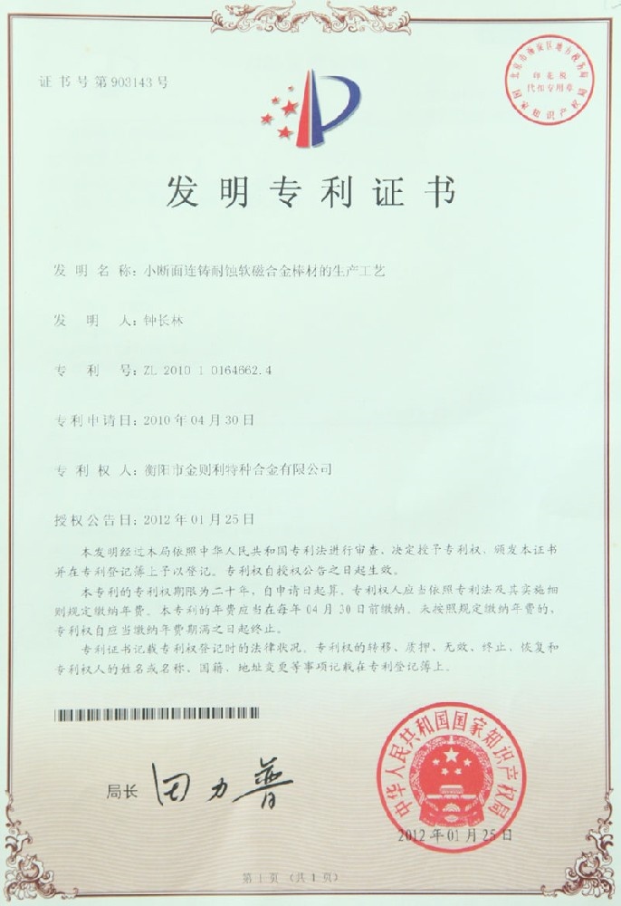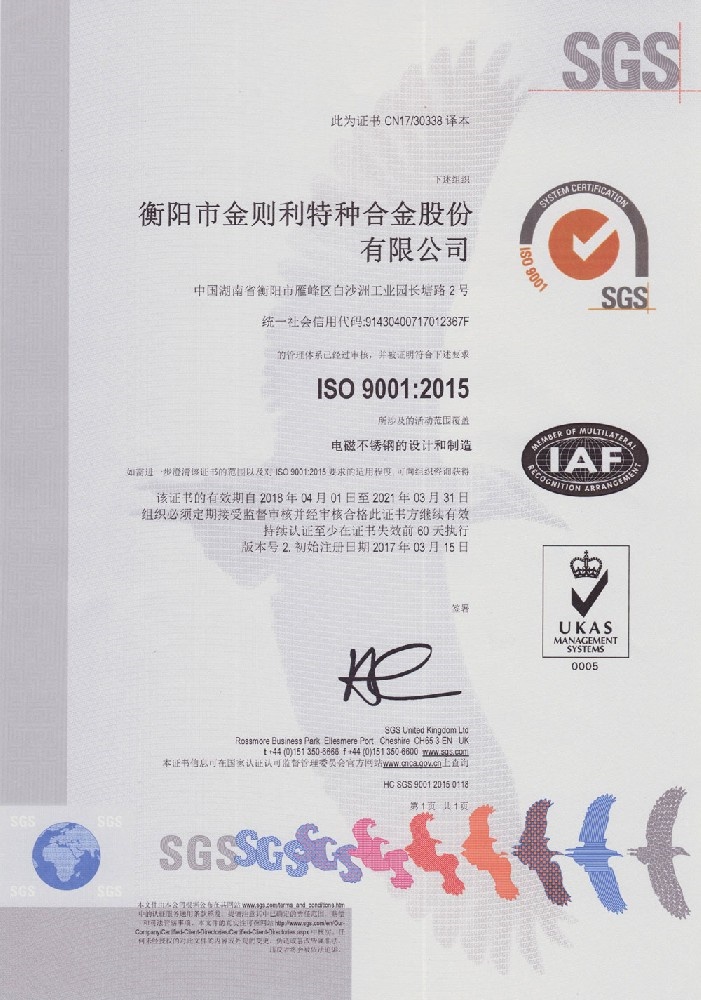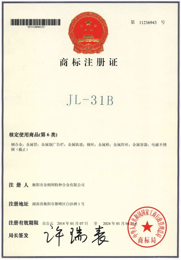 衡陽市金則利特種合金股份有限公司成立于一九九九年十二月,注冊(cè)資本人民幣兩千兩百萬元。注冊(cè)地址:衡陽市雁峰區(qū)白沙洲工業(yè)園長塘路2號(hào)。公司主營耐蝕軟磁合金,為湖南省高新技術(shù)企業(yè)。公司自成立以來,即致力于耐蝕軟磁合金的研發(fā)。 研制出的JL-31(00Cr13si2Pb)、JL-31B(00Cr13si2)、JL-31BS(00Cr13Si2S)、JL-37B(0Cr17Si2)、JL-37(0Cr17···