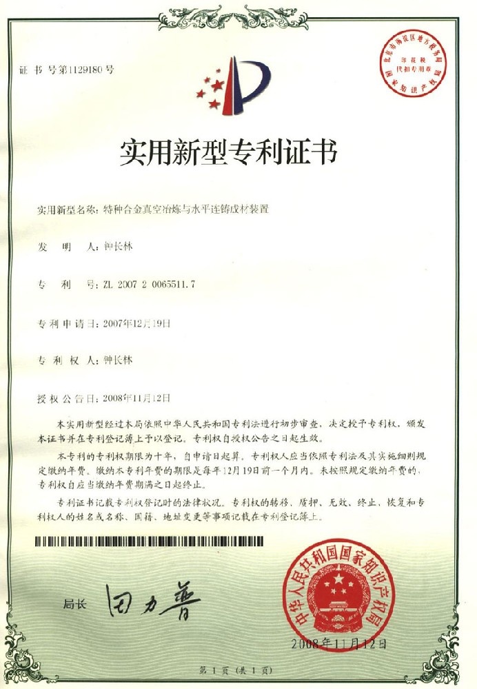 • 實(shí)用新型專利證書